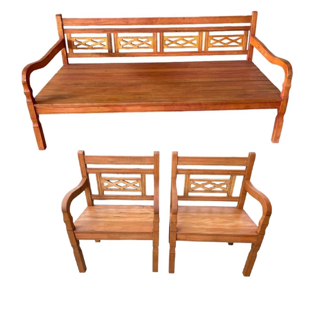 Apresentamos o nosso jogo do Banco Grande de Jardim e Sala de Estar, uma peça imponente e versátil projetada para acomodar até 6 pessoas, combinando o charme rústico com a durabilidade da madeira maciça. Com dimensões generosas, este banco apresenta uma altura de 0,95 cm, profundidade de 1,00 m e comprimento amplo de 2,00 m.